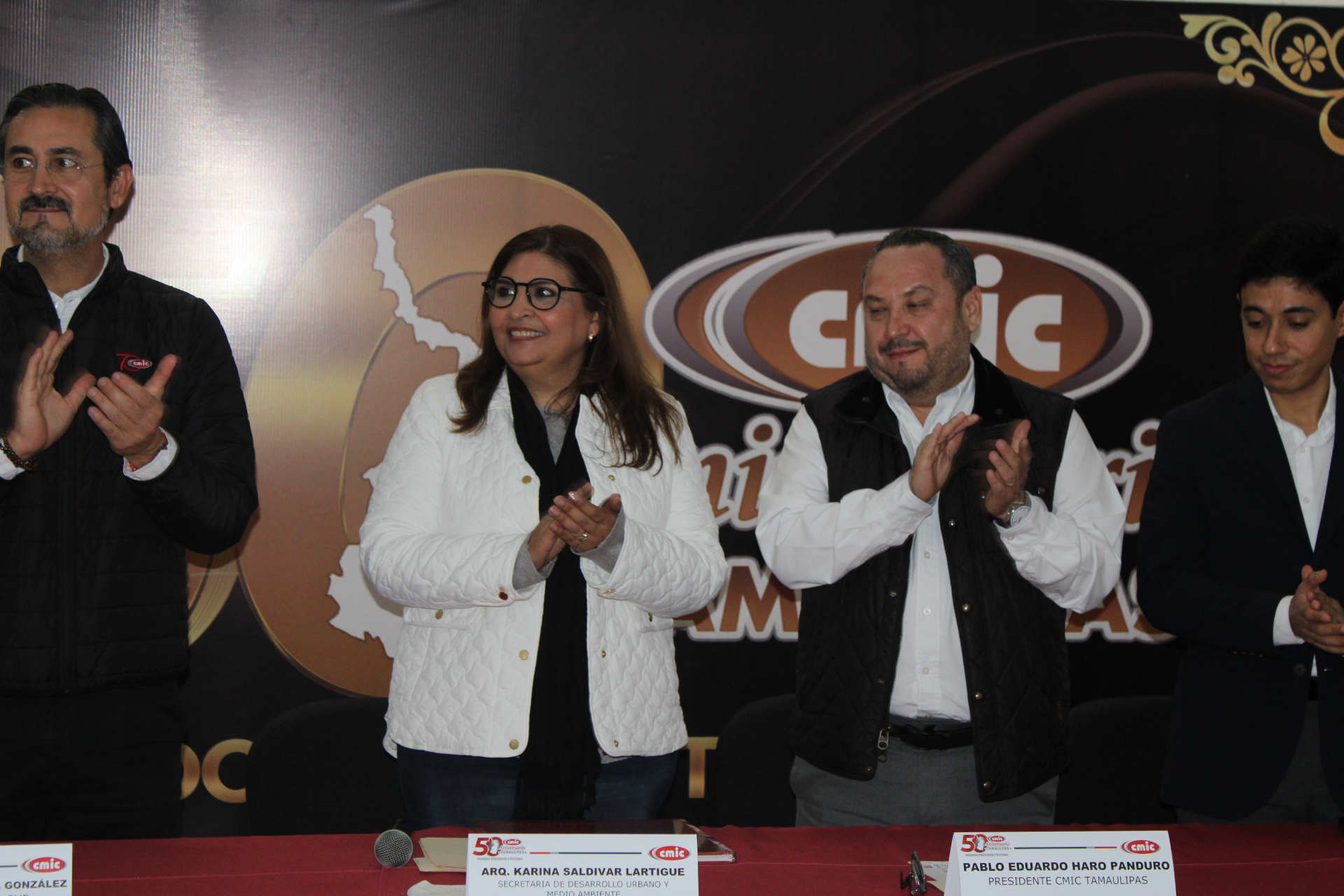Tampico, Tamaulipas.– En el marco del trabajo colaborativo por el desarrollo de Tamaulipas, el día de hoy en la Cámara Mexicana de la Industria de la Construcción Tamaulipas, se llevó a cabo un encuentro de trabajo encabezado por su presidente Pablo Eduardo Haro Panduro, con la Arq. Karina Saldívar Lartigue, secretaria de Desarrollo Urbano y Medio Ambiente del Gobierno del Estado, con el objetivo de dialogar sobre los proyectos estratégicos que se impulsan en la zona sur de la entidad.