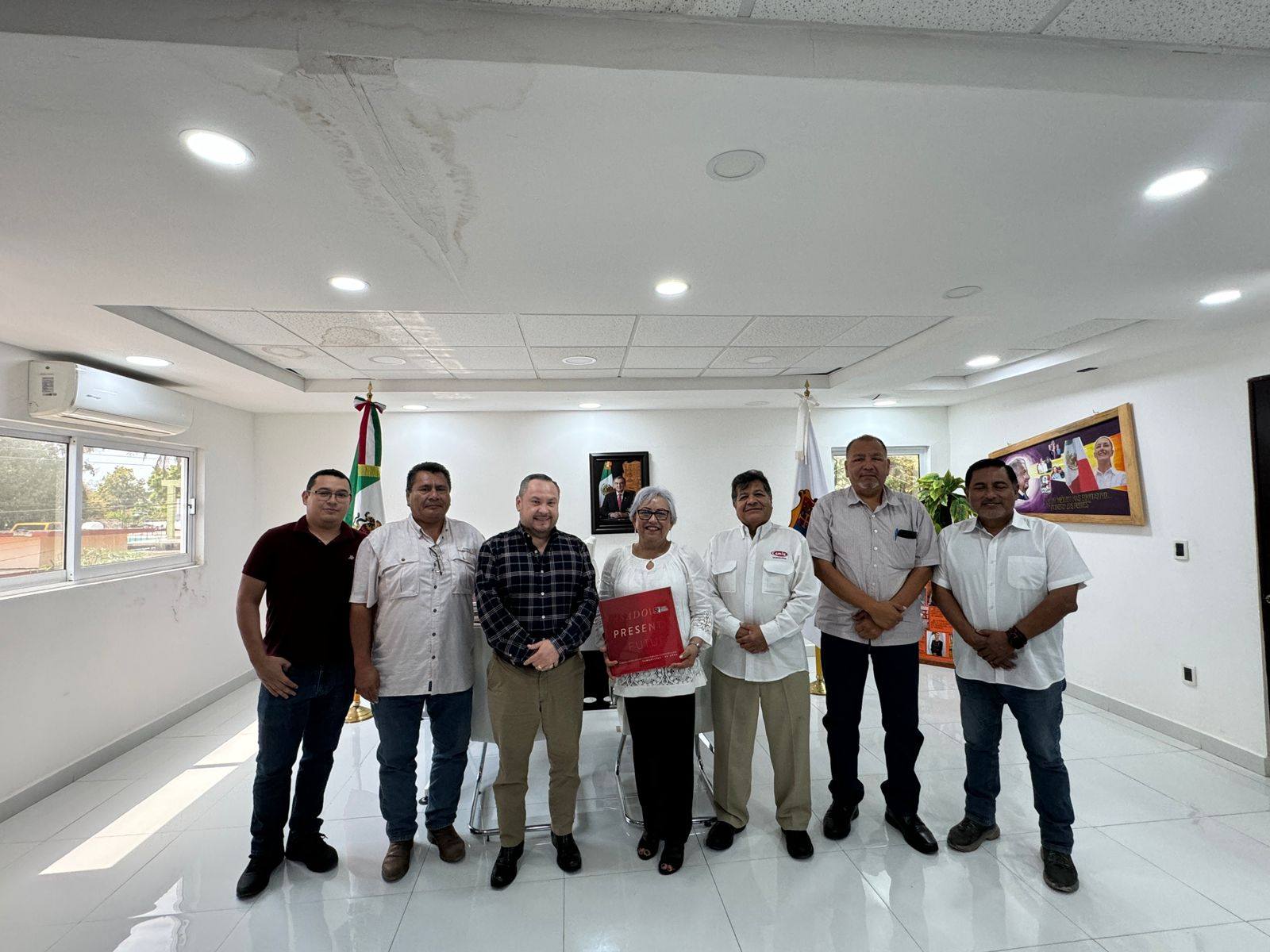Durante la reunión, el presidente de CMIC estuvo acompañado por integrantes del Comité Directivo, quienes sostuvieron un encuentro con autoridades municipales encabezadas por la presidenta municipal María Noemí Sosa Villarreal. En la reunión también participaron el MVZ Liberato García Sánchez, director de Obras Públicas; el Lic. Julio César Perales, contralor municipal; y el C.P. Héctor Alejandro Rojas Palacios, del área de Tesorería.